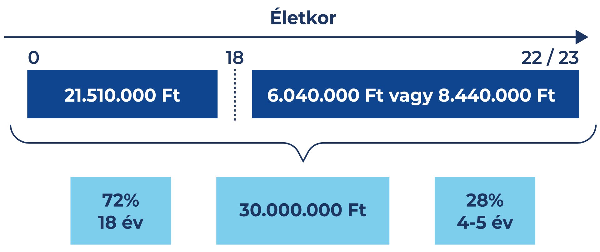 A szülők számára a gyermek felsőoktatási tanulmányai jelentik a legnagyobb anyagi megterhelést. A gyermekkel járó költségek 20%-30%-a ebben az 5 évben jelentkezik.